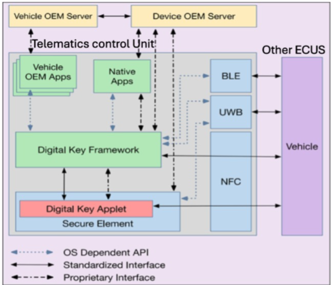 Vehicle ECU (Key Management ECU) service : Stores cryptographic credentials. Communicates with digital key devices